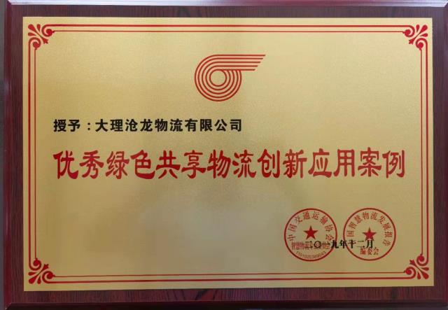2019年12月大理滄龍物流有限公司的"綠色物流產(chǎn)業(yè)鏈延伸"創(chuàng)新方法,經(jīng)物流界權(quán)威專家評審確認(rèn)后,成功入選全國"優(yōu)秀綠色共享物流創(chuàng)新應(yīng)用案例"。