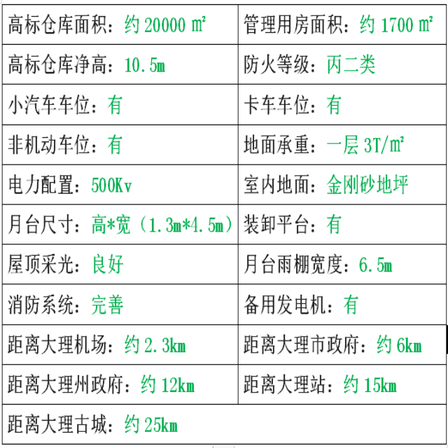 園區地點位于大理市上登片區。獨立產權,歸屬大理滄龍物流有限公司。園區主要建設有高標倉庫3個;管理用房1棟;配套設施完善,水電充足,2023年3月初交付使用。