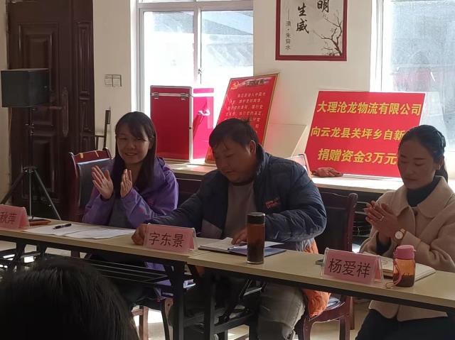 之后關坪鄉黨委副書記楊愛祥在會上作了總結講話,她表示鄉村振興工作任務任重道遠,大漾云高速公路開通后希望有更多像大理滄龍物流有限公司這樣有社會責任感的企業來到自新村,探索鄉村振興新路子,助力鄉村振興事業。也會監督自新村對捐贈資金進行?顚S,將捐贈資金用于鄉村振興公益事業上。